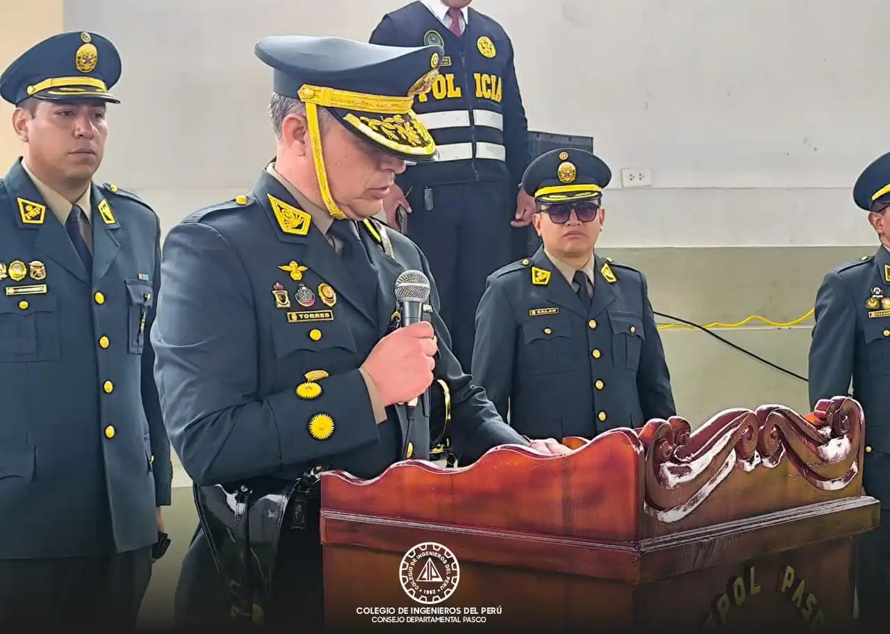 El decano del Colegio de Ingenieros del Perú – Consejo Departamental Pasco, Ing. Juan Rojas Quispe, participó en la ceremonia de asunción del nuevo jefe de la Región Policial Pasco, General PNP Carlos Torres Aragonez, acto protocolar que congregó a diversas autoridades de la región.